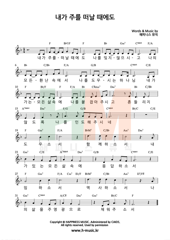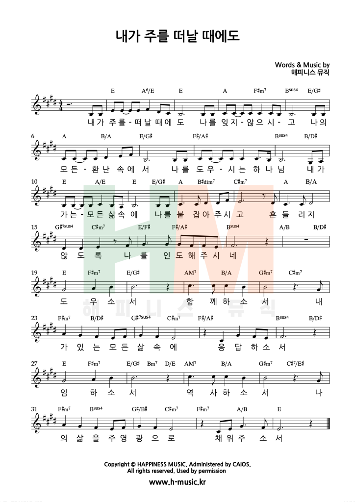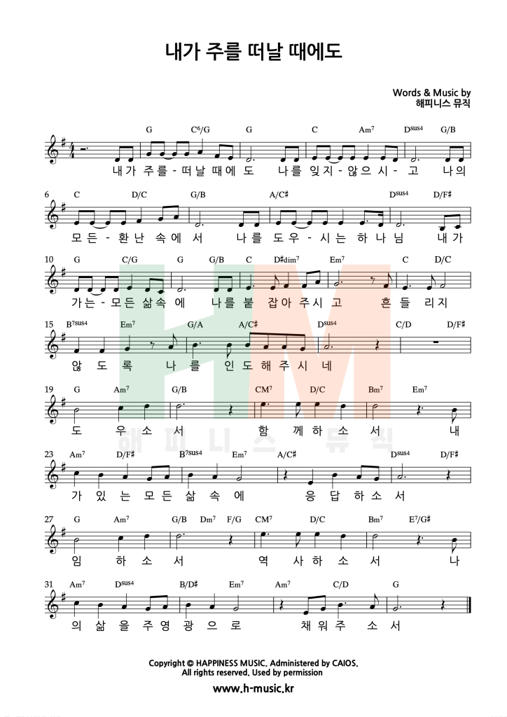 “내가 주를 떠날 때에도” 찬양은 해피니스 뮤직의 창작곡이며, 아직 발매되지 않은 곡입니다.