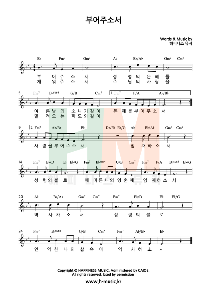 “부어주소서” 찬양은 해피니스 뮤직의 창작곡이며, 아직 발매되지 않은 곡입니다.