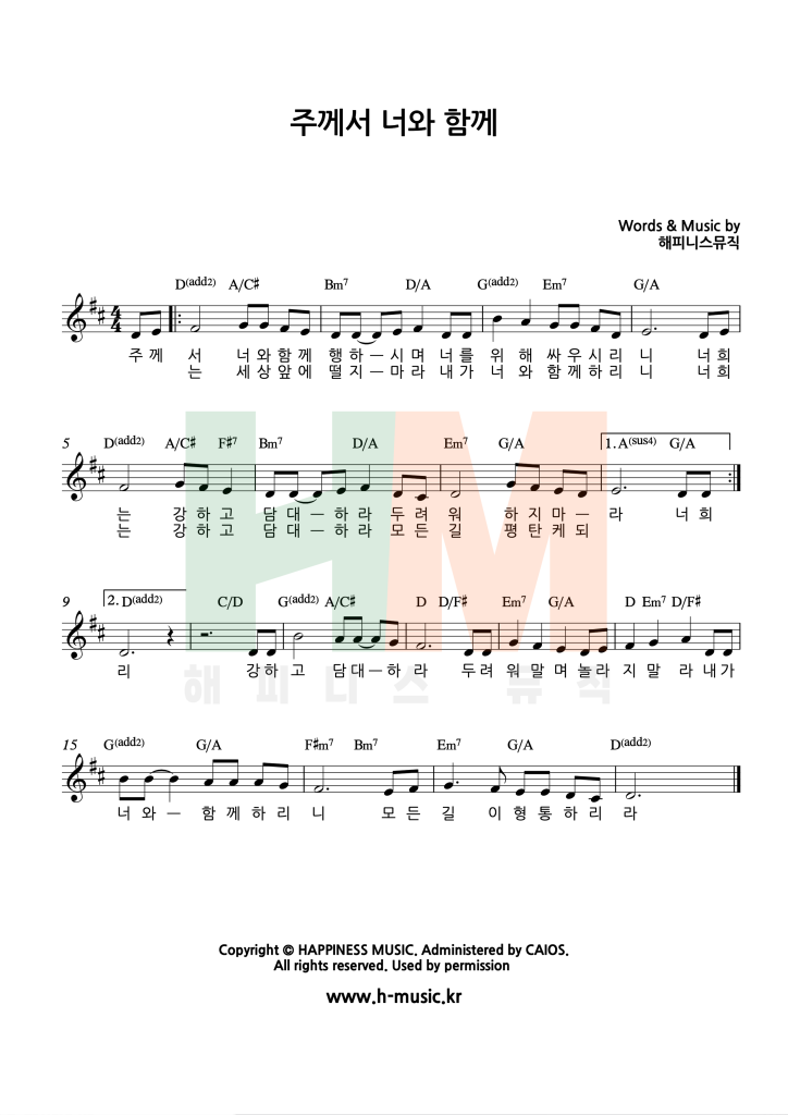 “주께서 너와 함께” 찬양은 해피니스 뮤직의 창작곡이며, 아직 발매되지 않은 곡입니다.