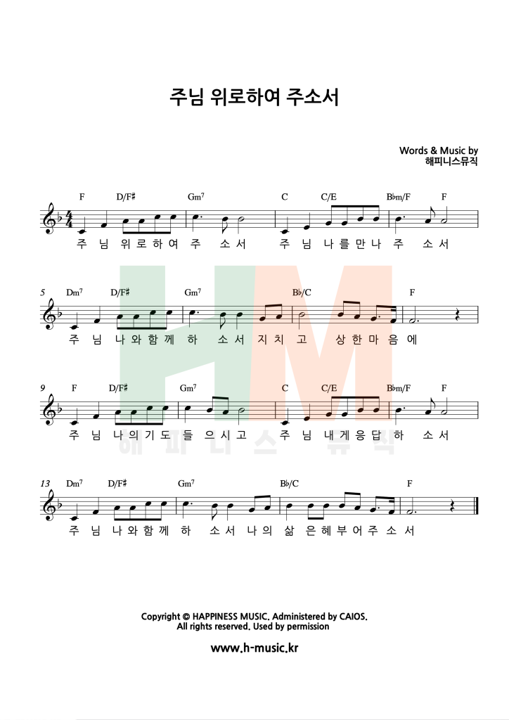 “주님 위로하여 주소서” 찬양은 해피니스 뮤직의 창작곡이며, 아직 발매되지 않은 곡입니다.